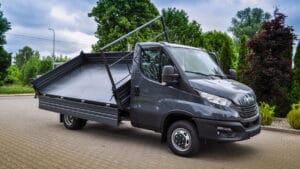 Nie zwalniamy tempa! Dziś prezentujemy Wam trójstronną wywrotkę na podwoziu Iveco Daily. Stalowe burty zostały pomalowane pod kolor kabiny, a całość osadzona jest na cynkowanej ogniowo ramie.
