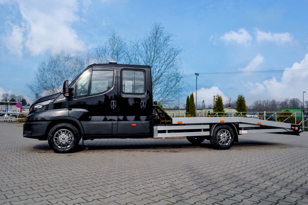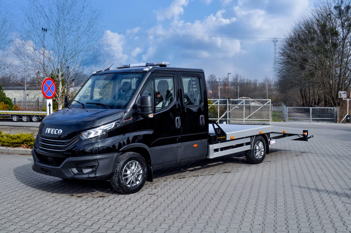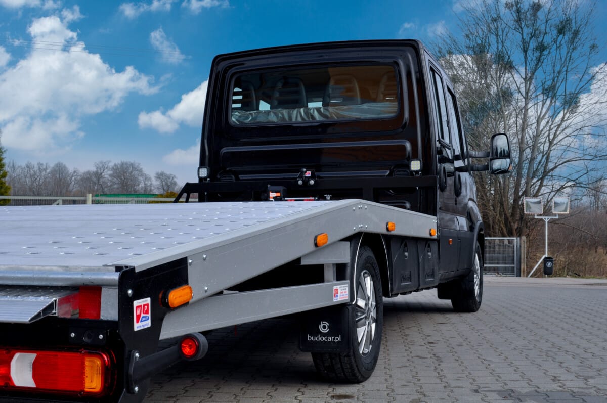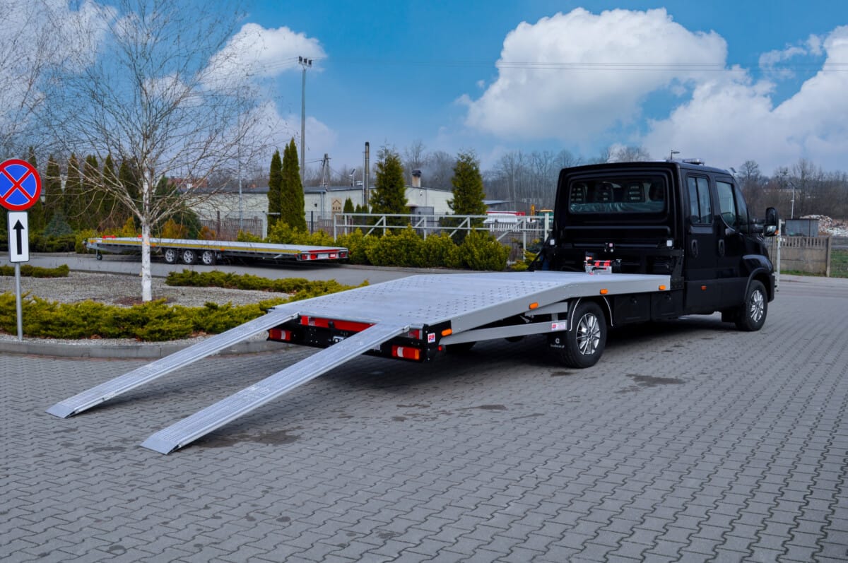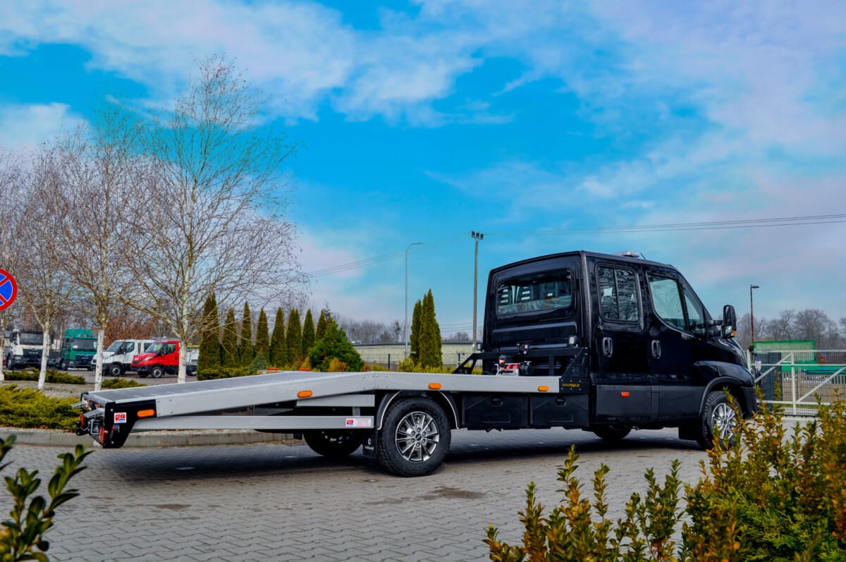 Korzystając z pięknej wiosennej aury prezentujemy naszą najnowszą autolawetę. Pojazd na podwoziu Iveco Daily wyposażony został w aluminiowy najazd, skrzynki narzędziowe, oświetlenie obrysowe oraz wciągarkę.