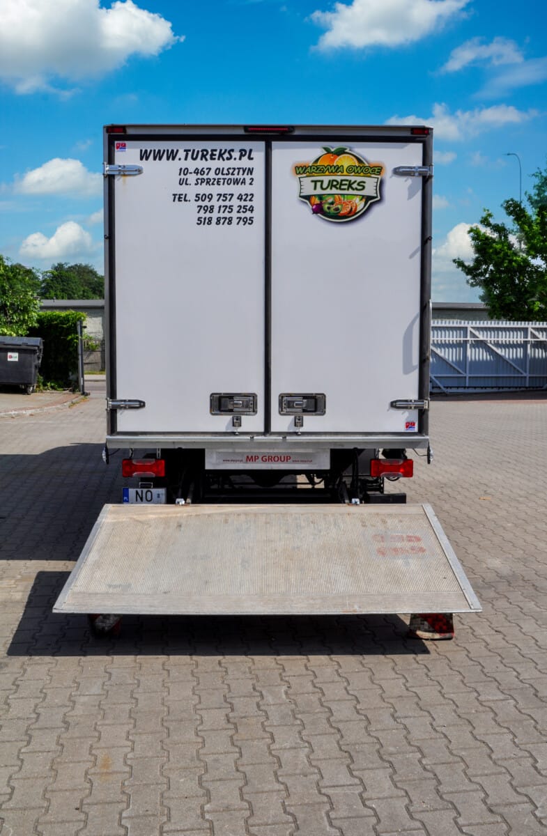 Oprócz tego na tyle kontenera zamontowaliśmy windę, która zdecydowanie ułatwi załadunek oraz rozładunek świeżych warzyw i owoców.