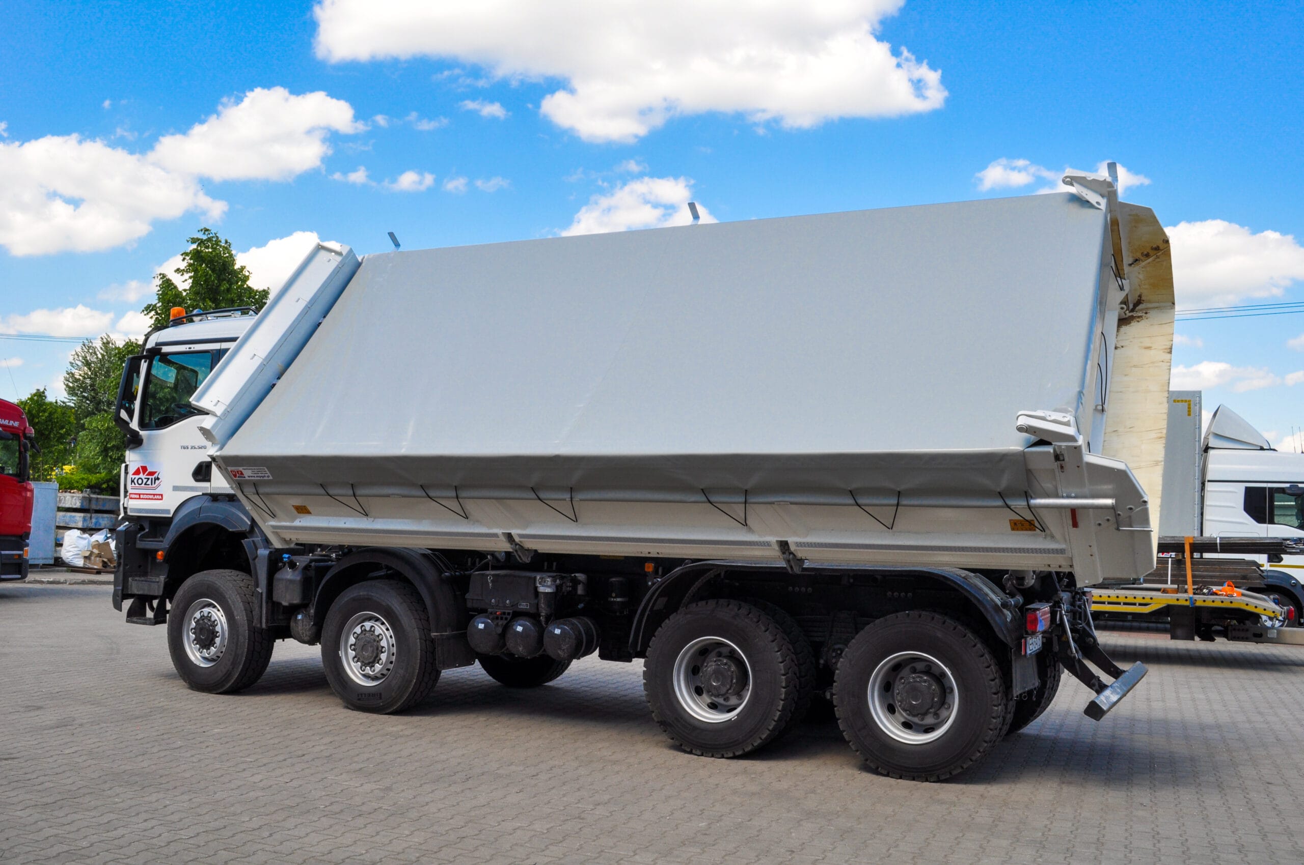 Przystosowaliśmy ją do transportu materiałów budowlanych, przez zamontowanie zwijanej plandeki wraz z naciągiem. Zwiększyliśmy w ten sposób bezpieczeństwo, ponieważ przewożone materiały nie stanowią już zagrożenia na drodze.