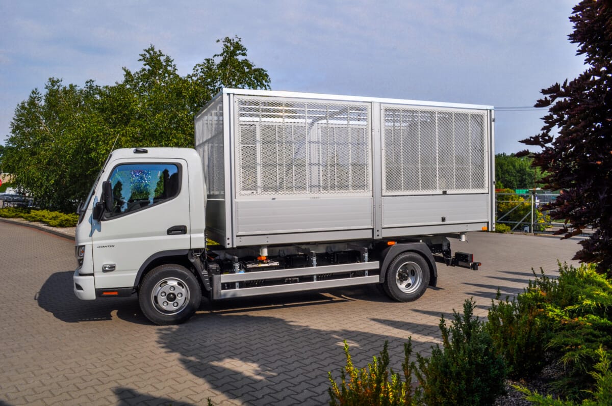 Po raz kolejny na podwoziu Mitsubishi Fuso eCanter powstała osiatkowana skrzynia, idealna na potrzeby służb komunalnych. Lekka i wytrzymała aluminiowa konstrukcja zapewnia odpowiednią ładowność oraz funkcjonalność przy selektywnej zbiórce odpadów.