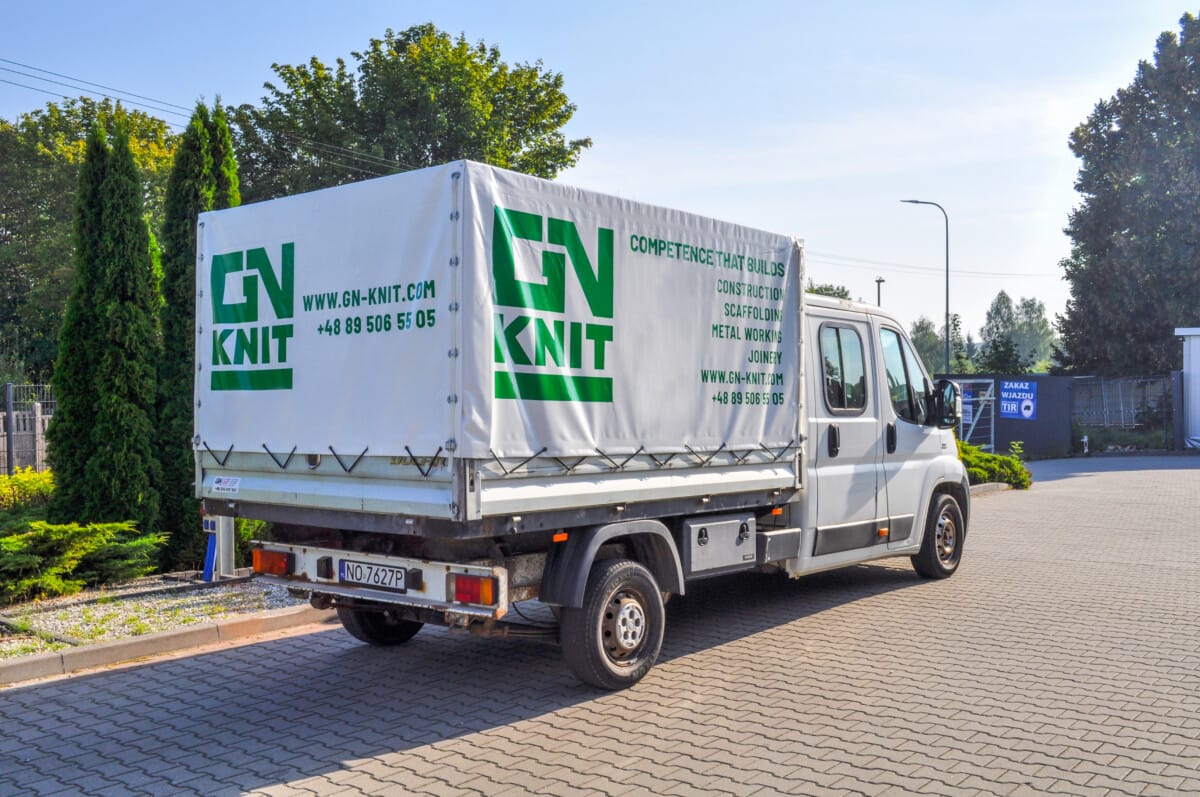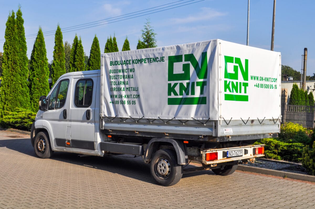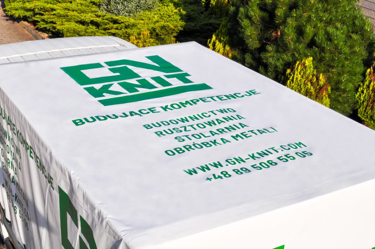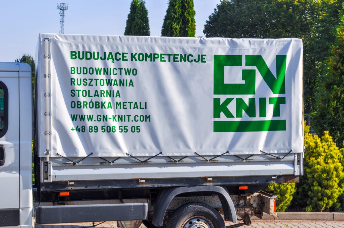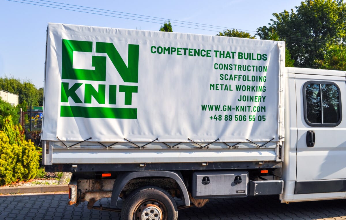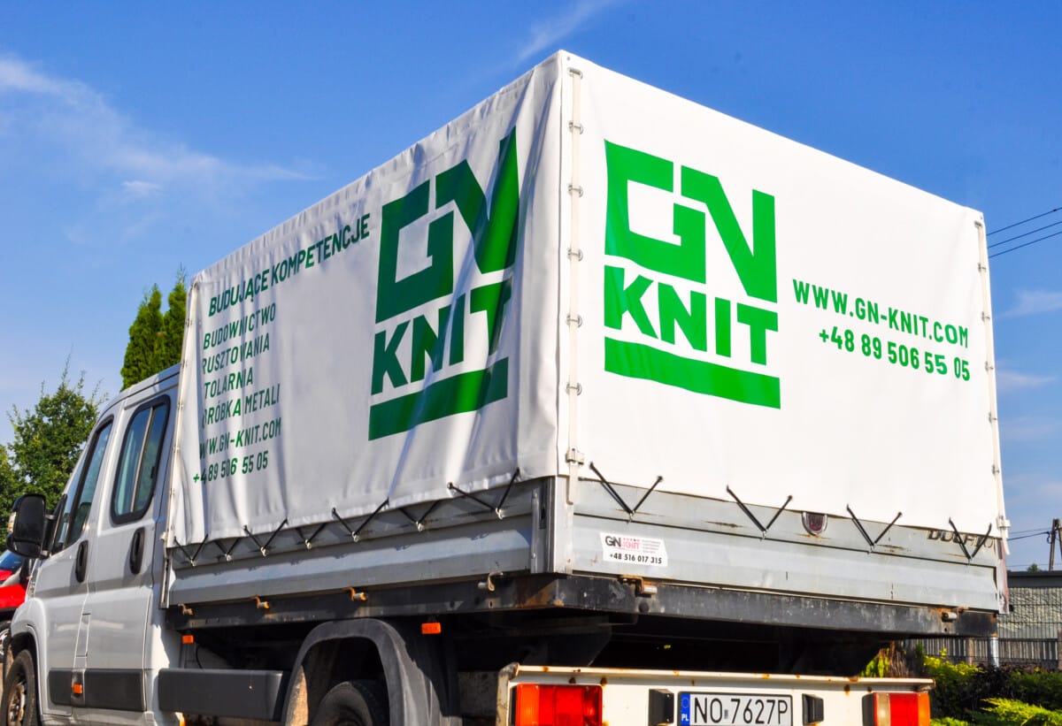 Marka GN KNIT prowadzi prace w zakresie budownictwa i szeroko pojętej obróbce metali. My natomiast specjalizujemy się w plandekach z reklamami. Efekt takiej współpracy prezentujemy na poniższych zdjęciach.