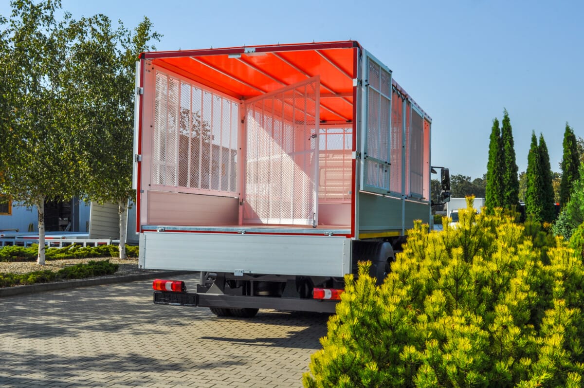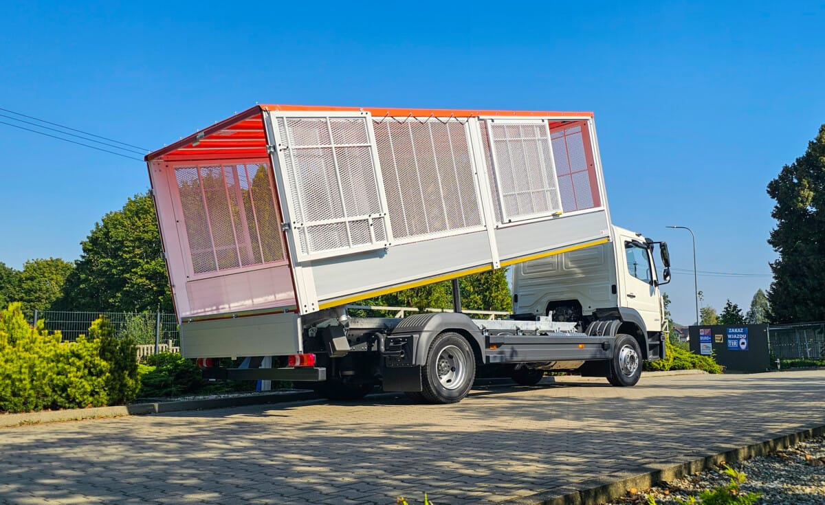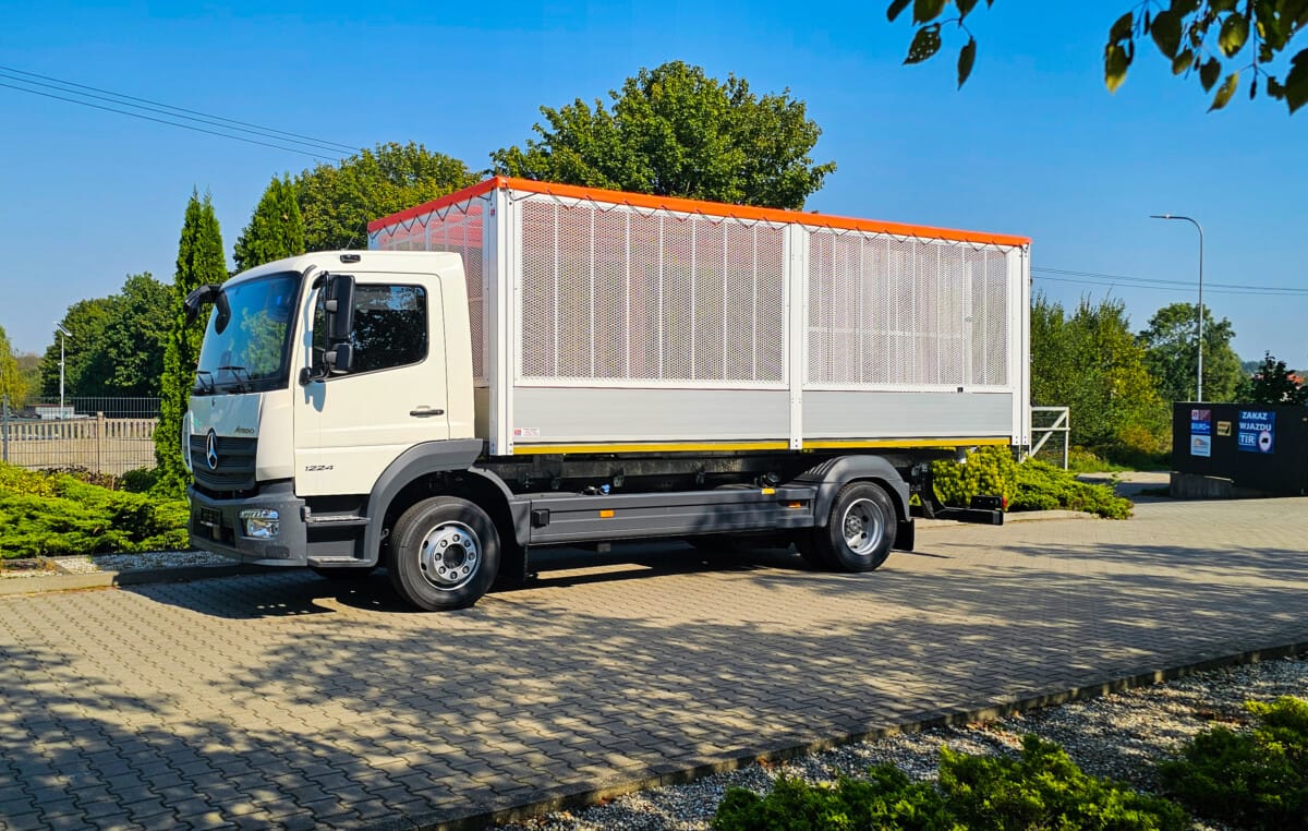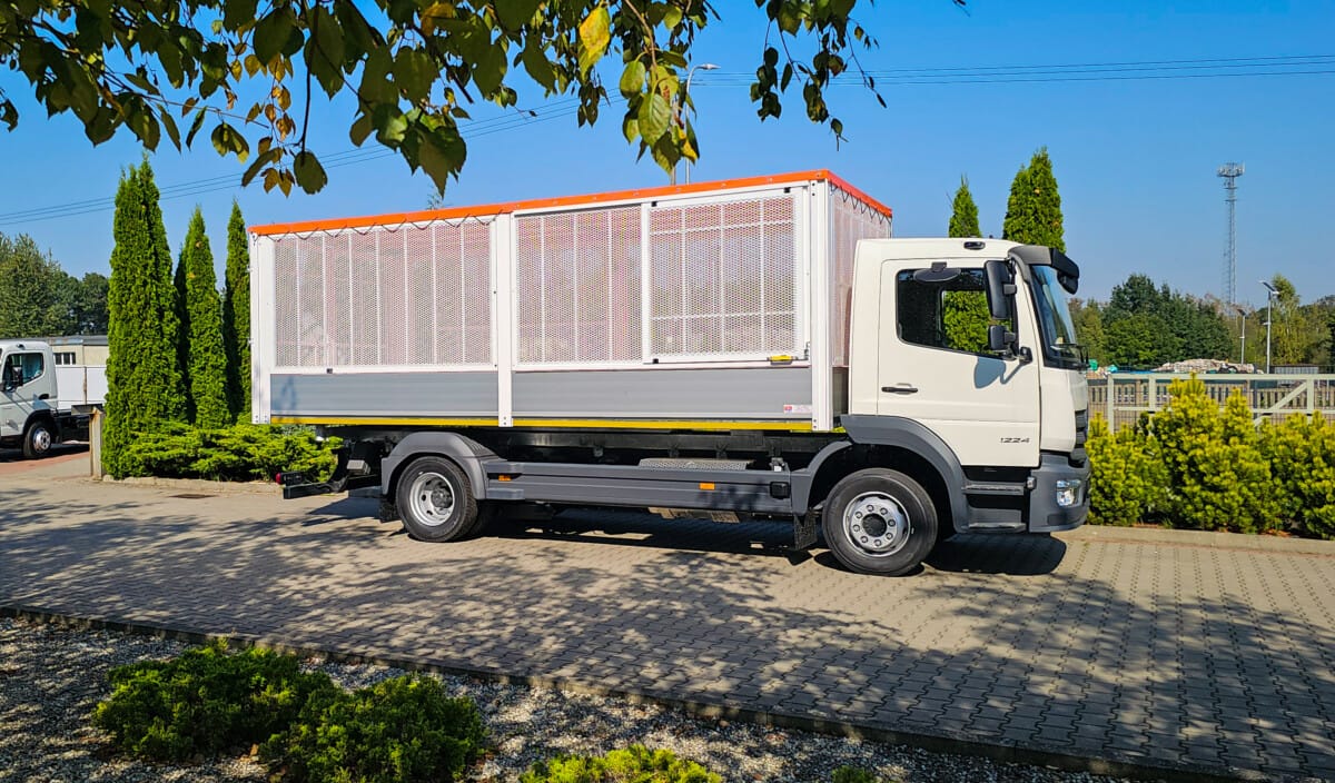 Tym razem na podwoziu Mercedesa Atego powstała prawie 6-metrowa skrzynia z nadstawkami z siatki drobnooczkowej. Zamontowane po prawej stronie przedniej części siatkowej, drzwi załadunkowe zapewniają wygodę oraz funkcjonalność. Demontowalna przegroda w połowie zabudowy pozwalają na wydzielenie dwóch osobnych przestrzeni wewnątrz skrzyni.