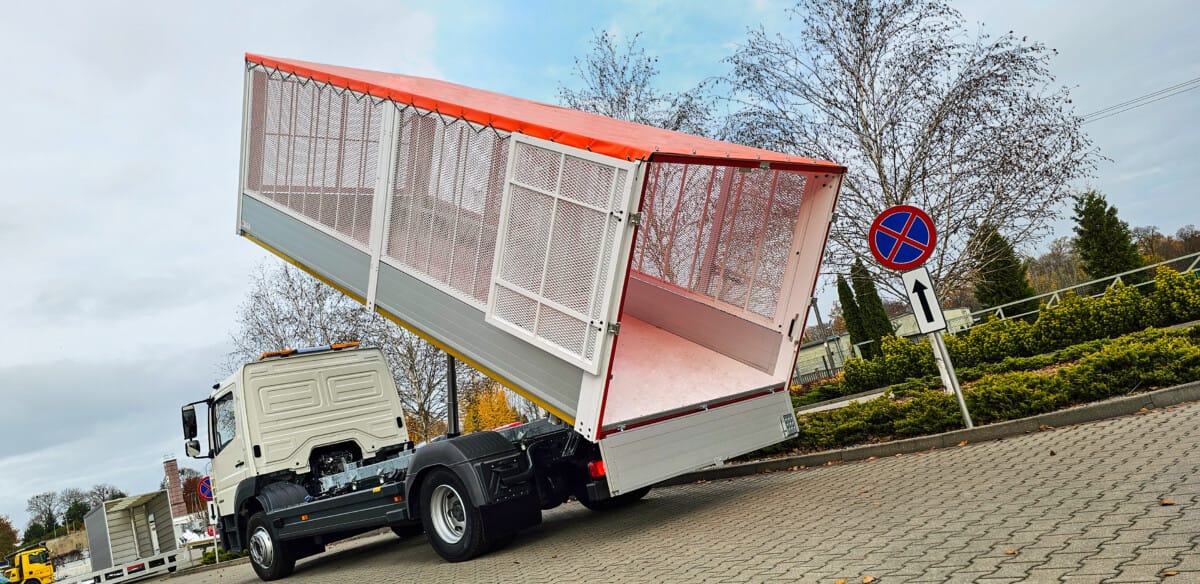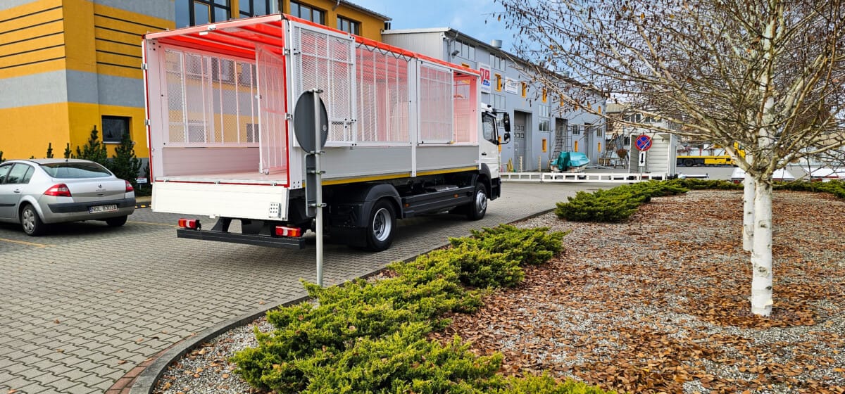 Kolejna zrealizowana zabudowa. Tym razem na podwoziu Mercedes Atego powstała osiatkowana skrzynia, idealna na potrzeby służb komunalnych. Lekka i wytrzymała aluminiowa konstrukcja zapewnia odpowiednią ładowność a przegroda wewnątrz zabudowy to dodatkowa funkcjonalność.