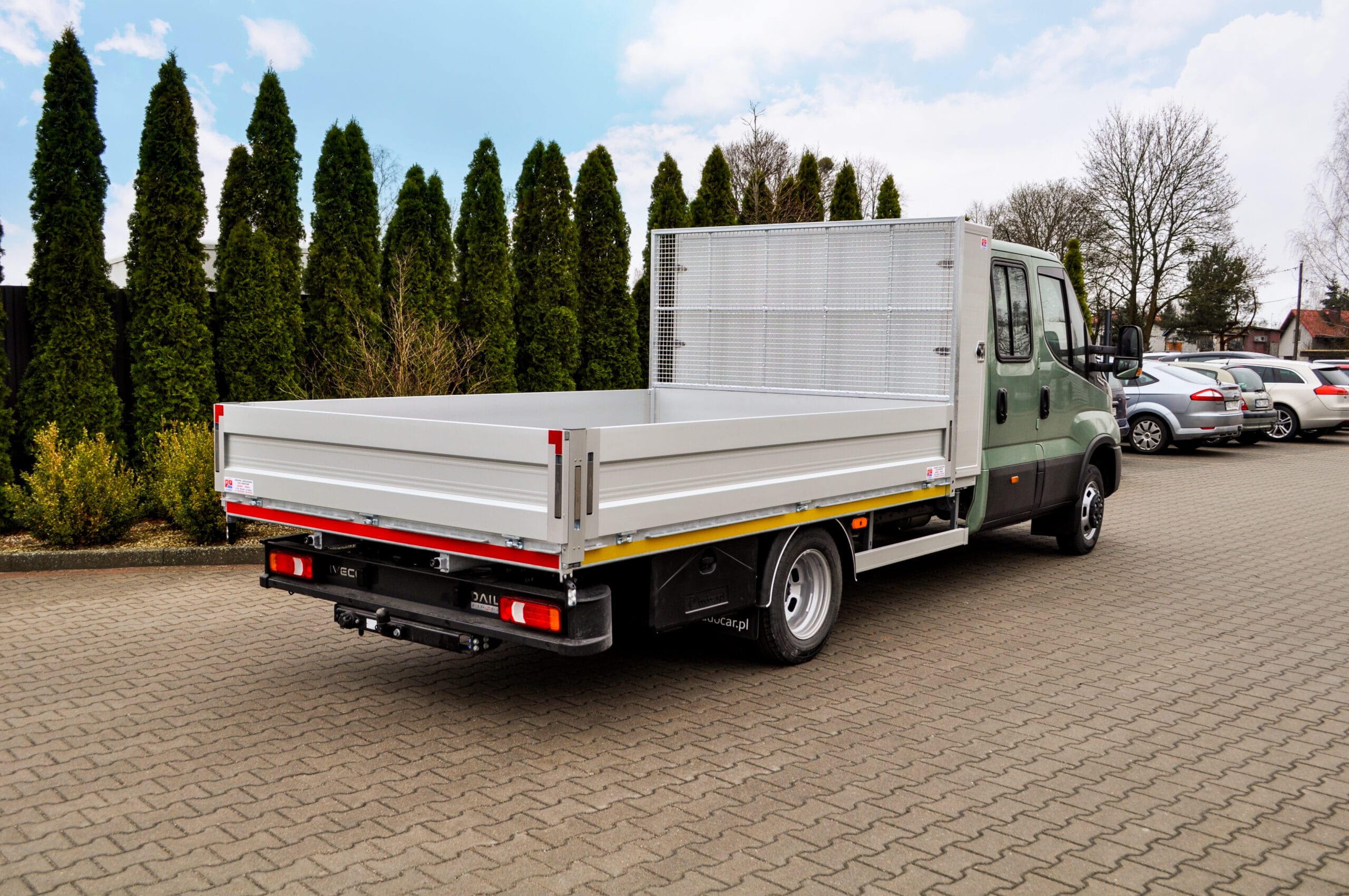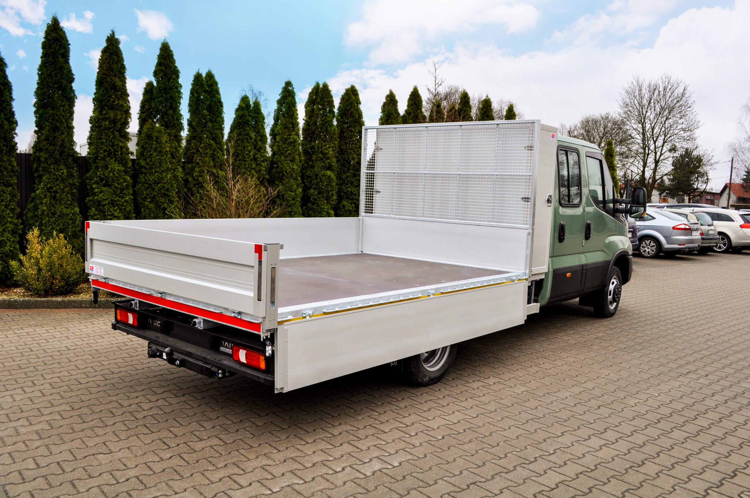 Bazą do tej zabudowy jest niezawodne Iveco Daily – model, który zyskał reputację jednego z najbardziej trwałych i wydajnych samochodów dostawczych w swojej klasie. Auto wyposażone jest w podwójną kabinę (tzw. „doka”), dzięki czemu wygodnie pomieści nawet 6 pasażerów oraz kierowcę. To idealne rozwiązanie dla ekip roboczych, które potrzebują jednocześnie przestrzeni ładunkowej i osobowej.