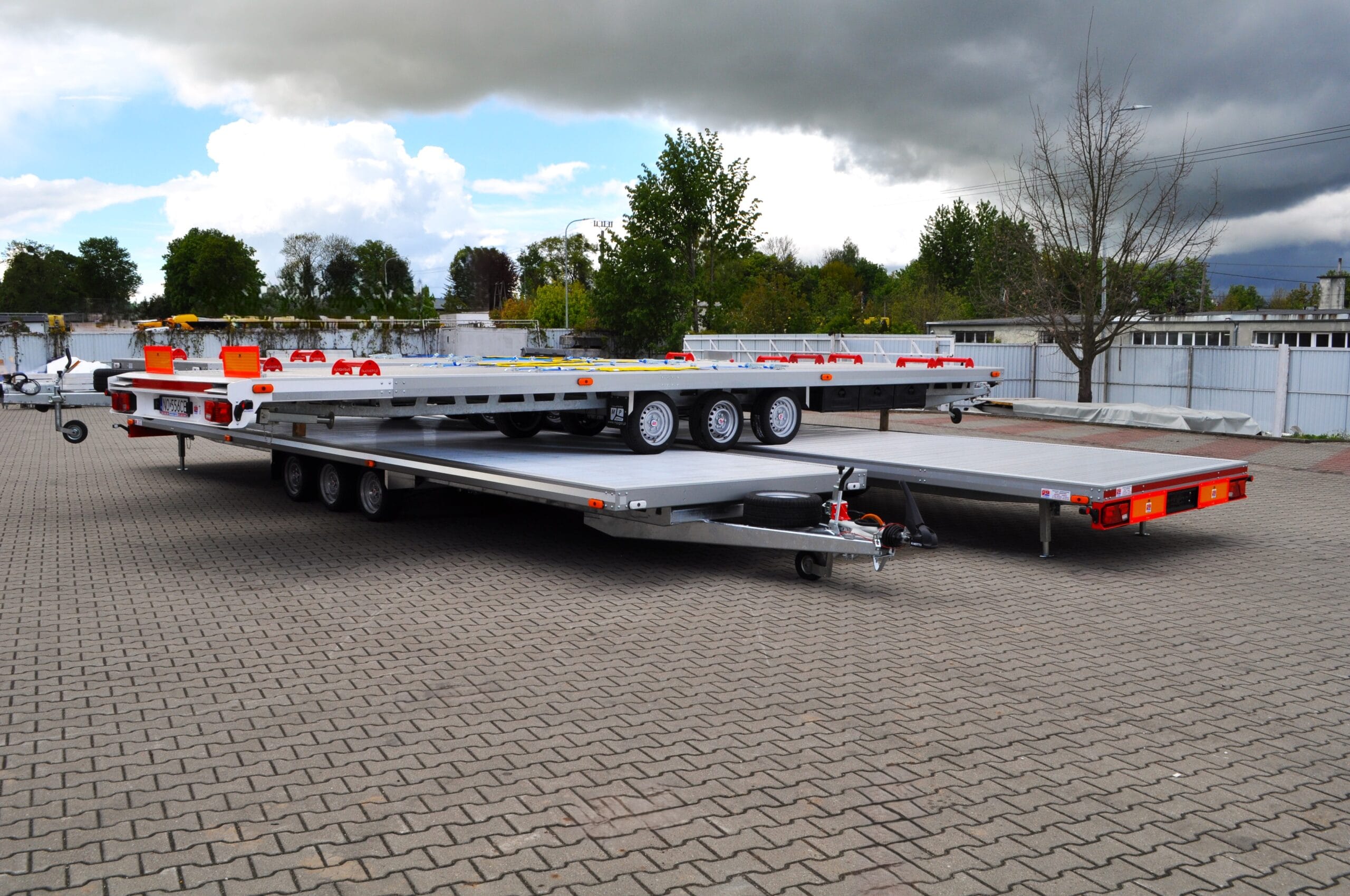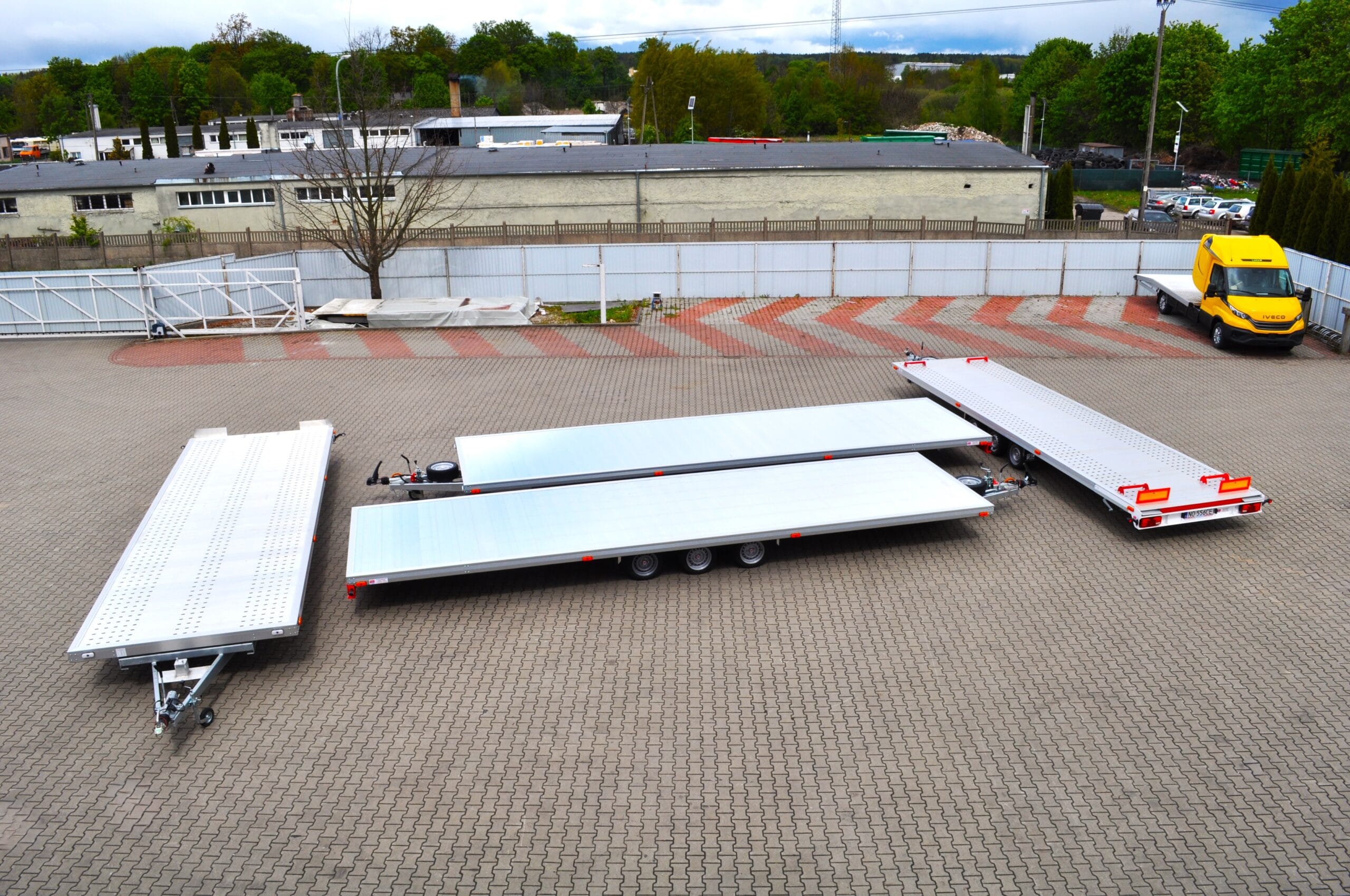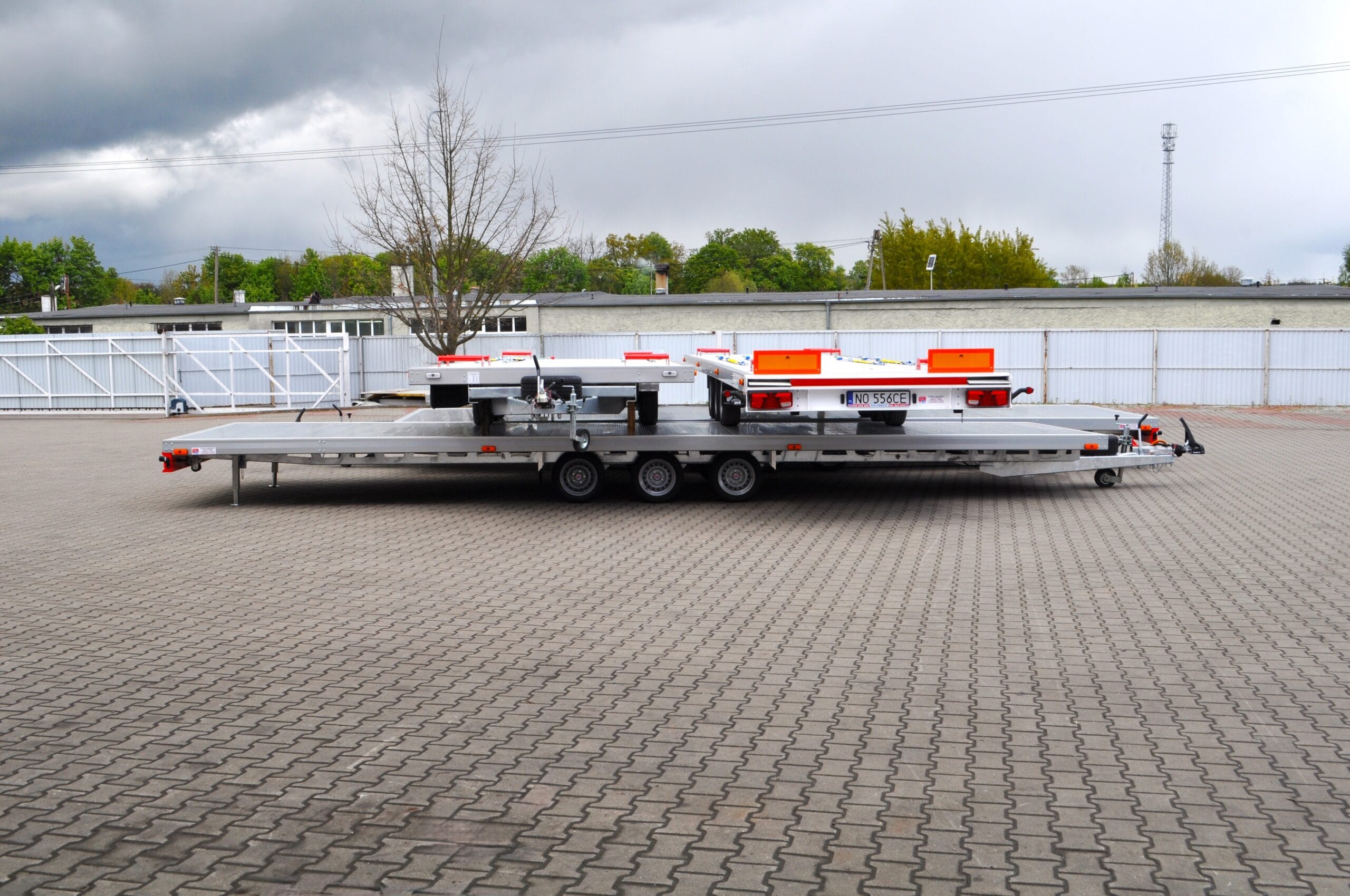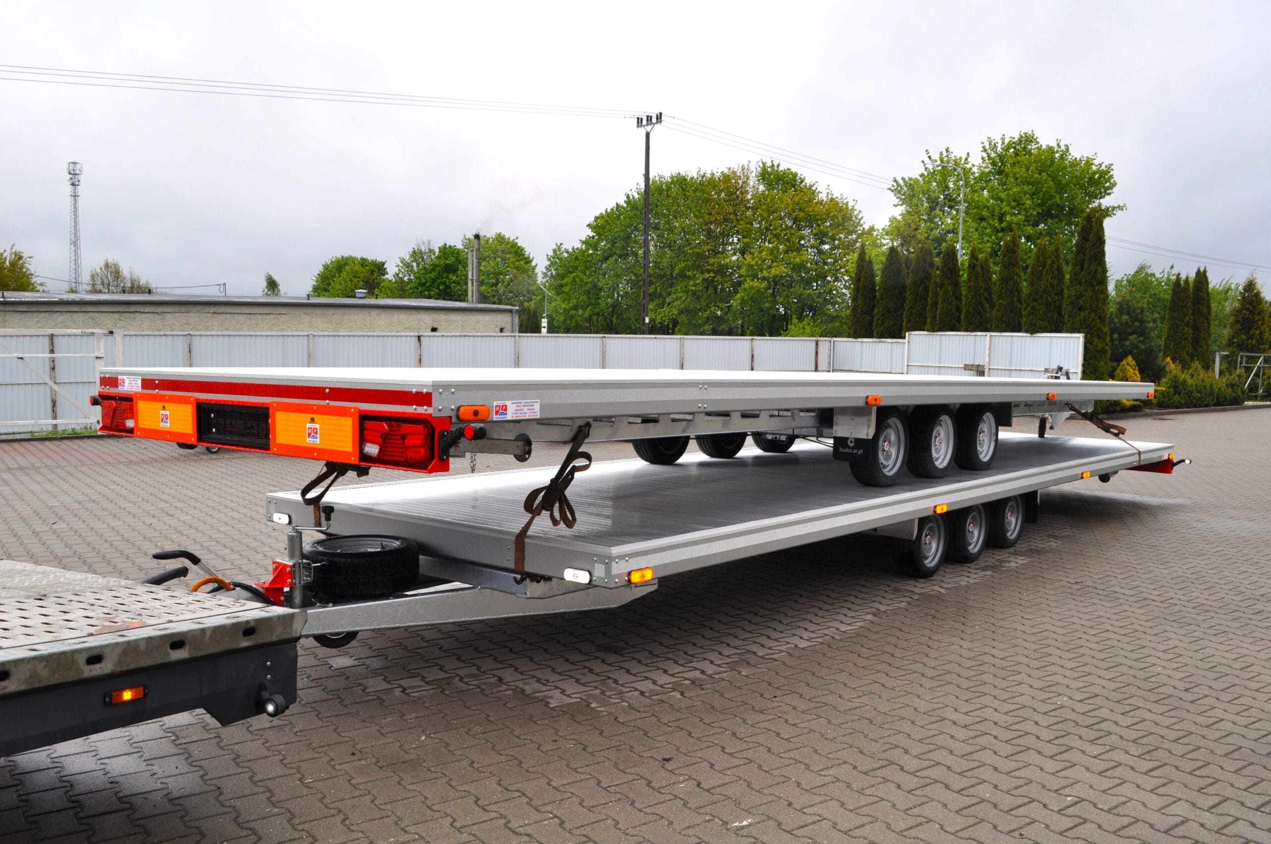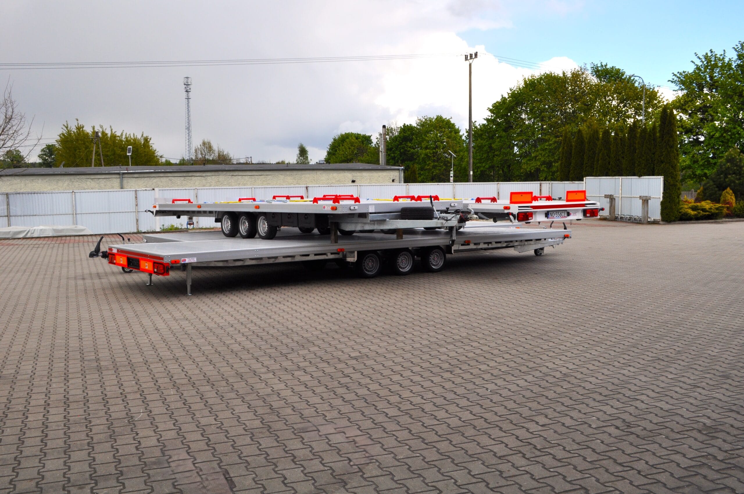 Na zdjęciu prezentujemy niecodzienny widok – cztery nasze przyczepy typu laweta ułożone w formie „piramidy”. To nie tylko efektowna prezentacja, ale też dowód na precyzję wykonania i idealne dopasowanie każdego modelu.