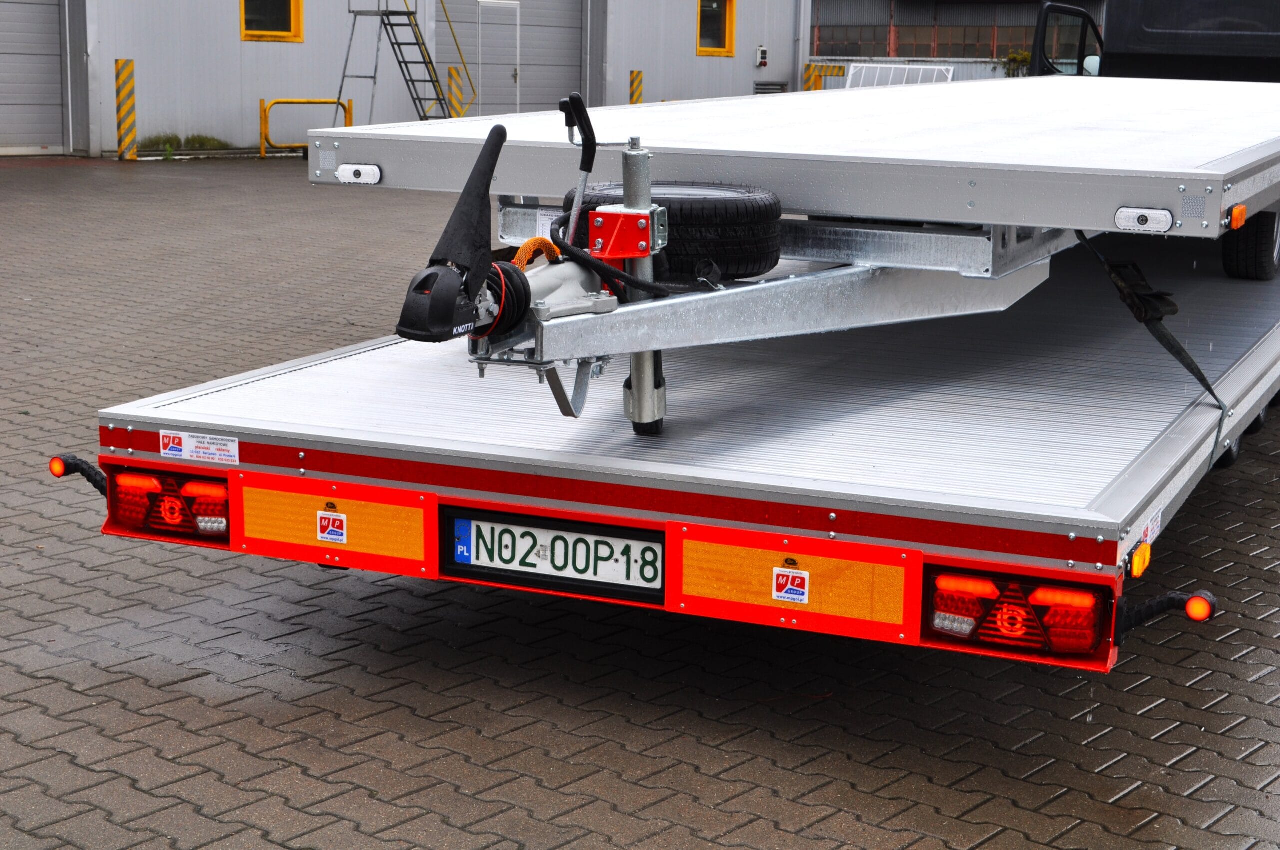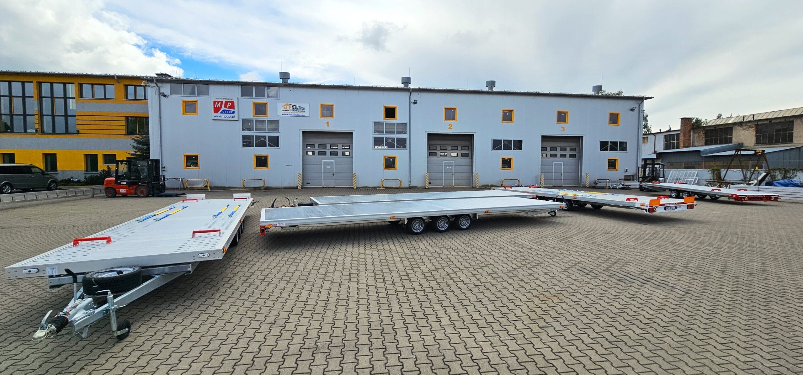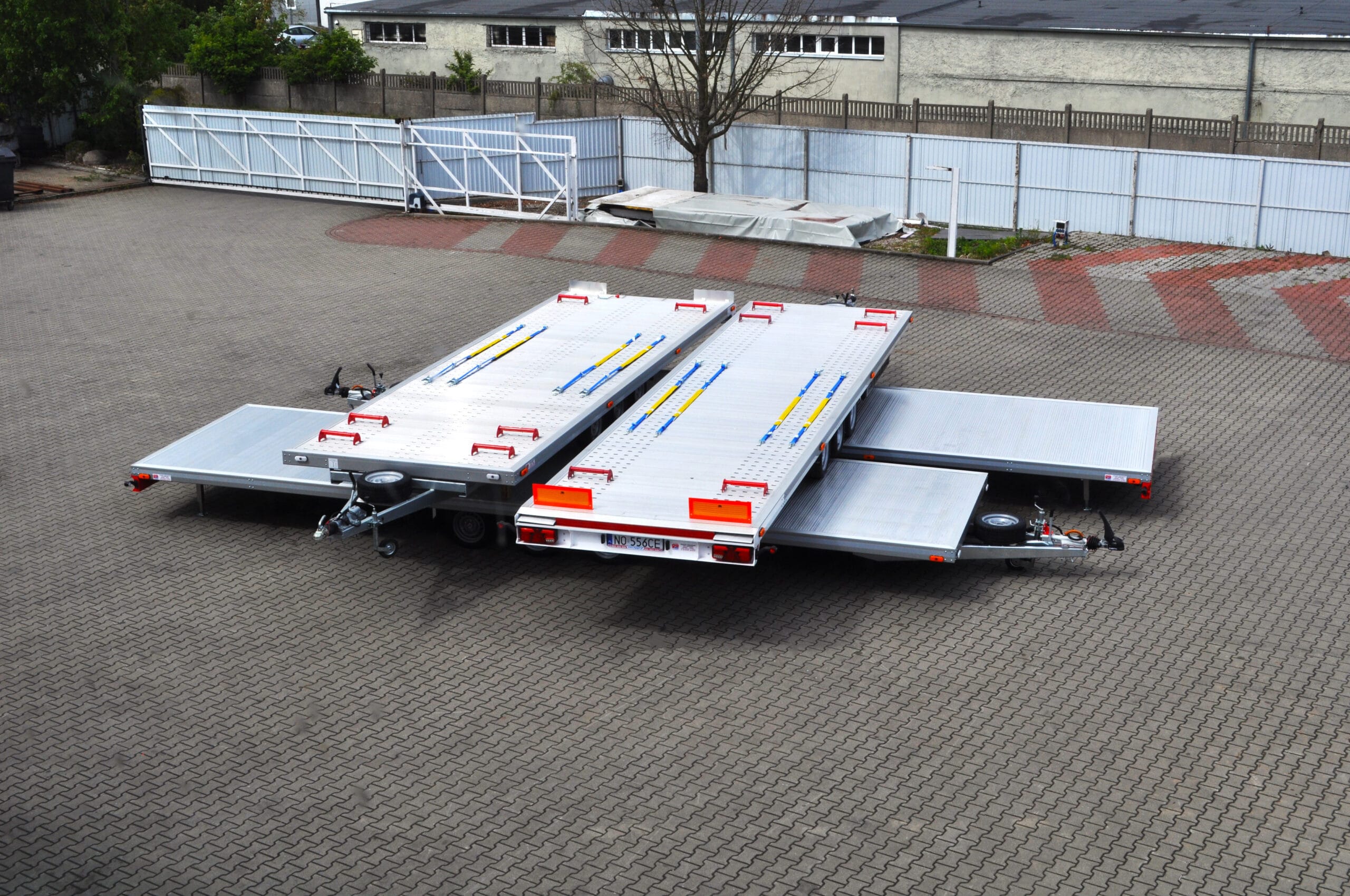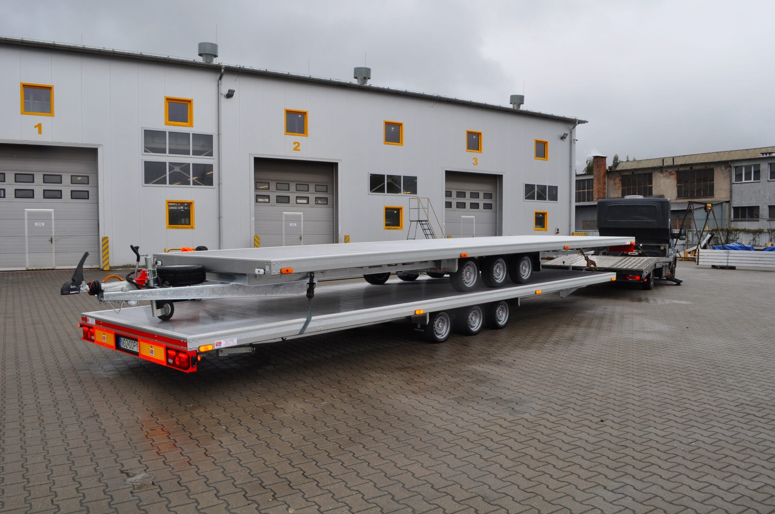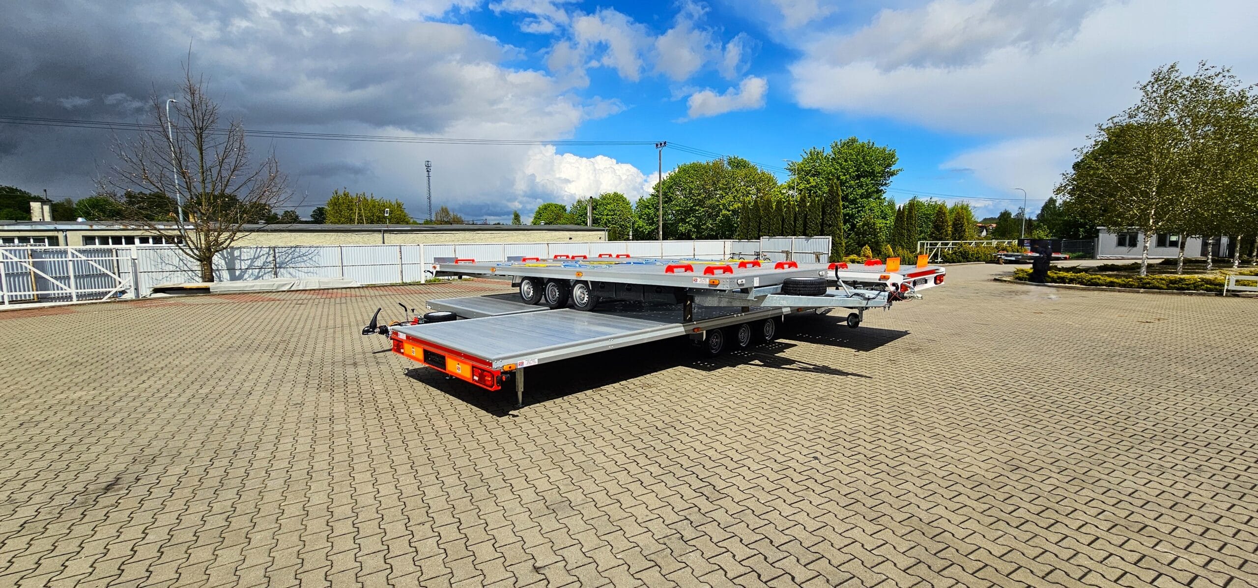 Na zdjęciu prezentujemy niecodzienny widok – cztery nasze przyczepy typu laweta ułożone w formie „piramidy”. To nie tylko efektowna prezentacja, ale też dowód na precyzję wykonania i idealne dopasowanie każdego modelu.