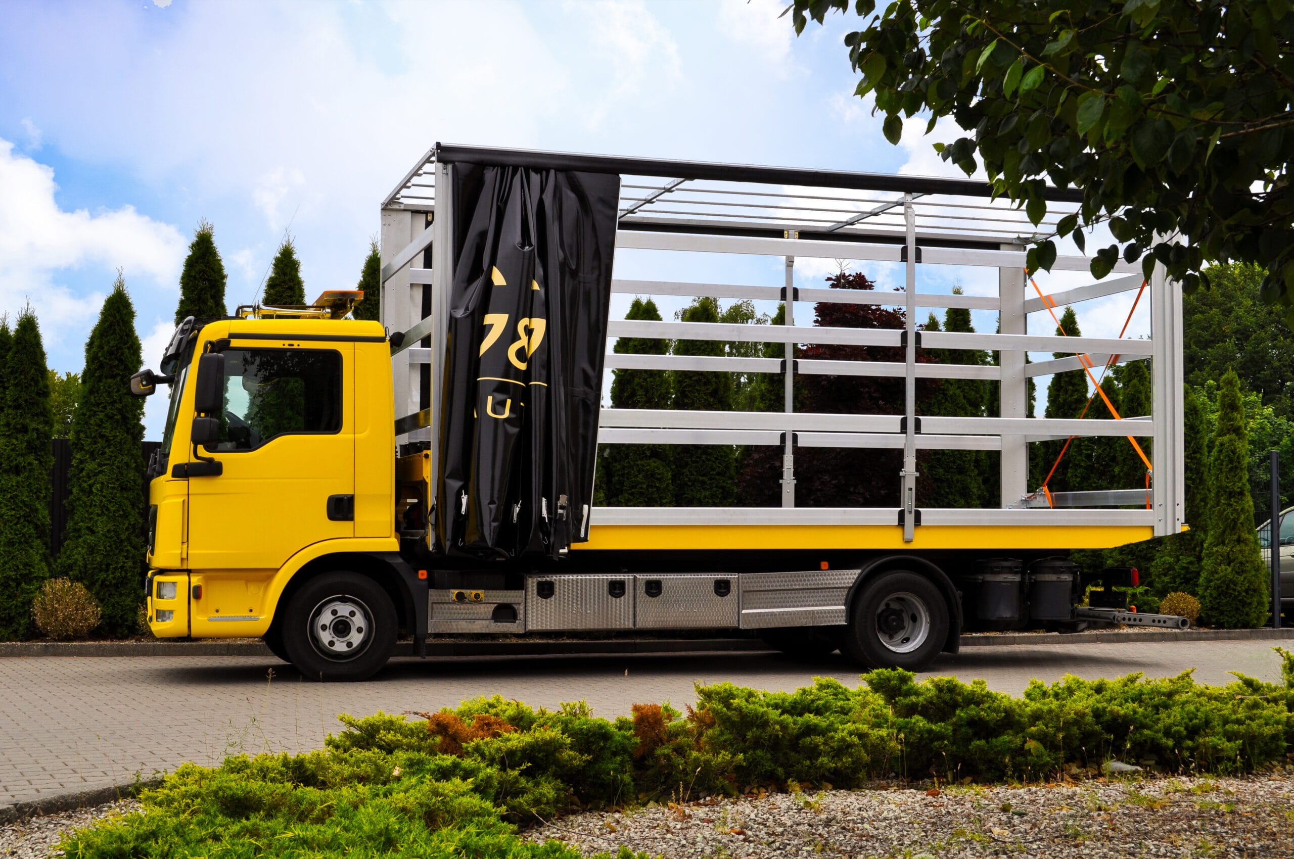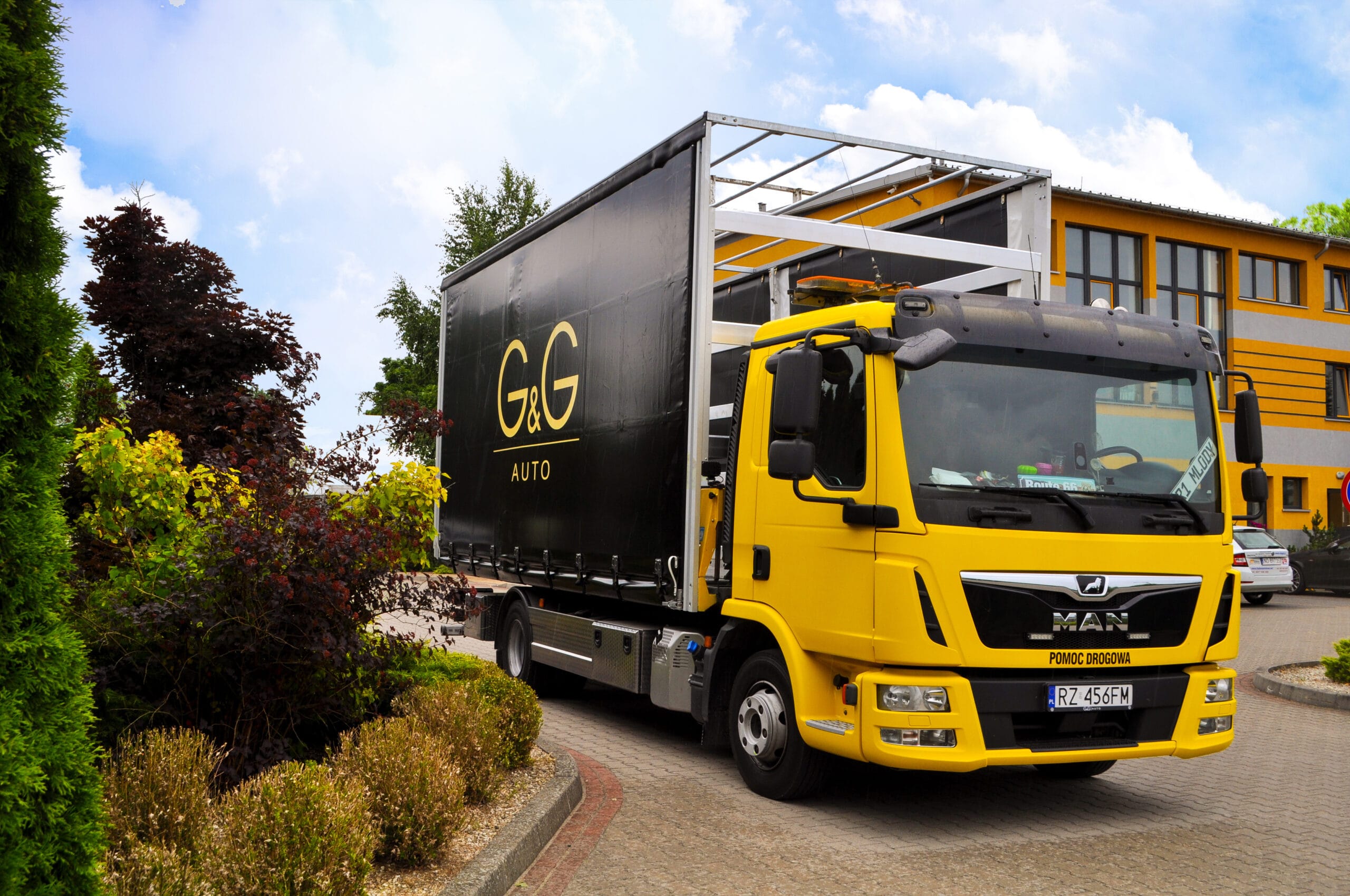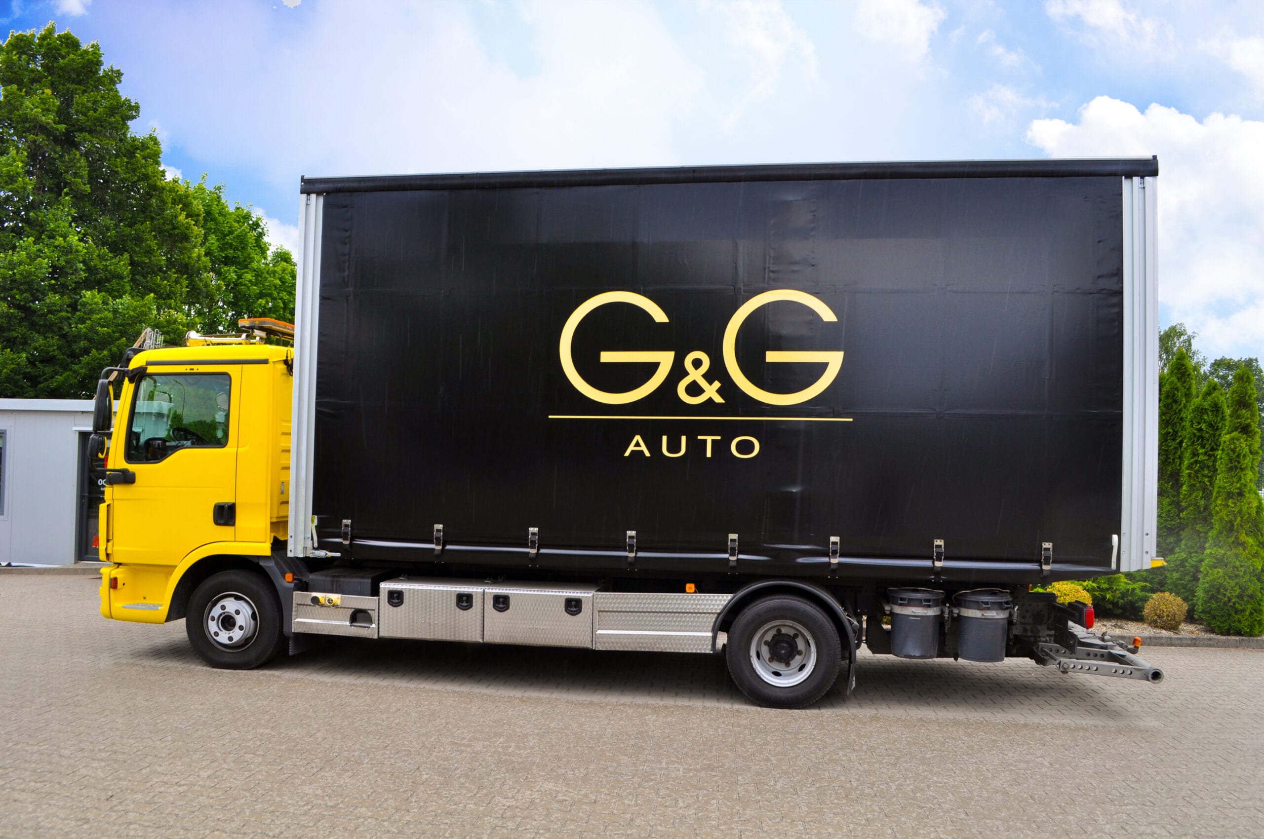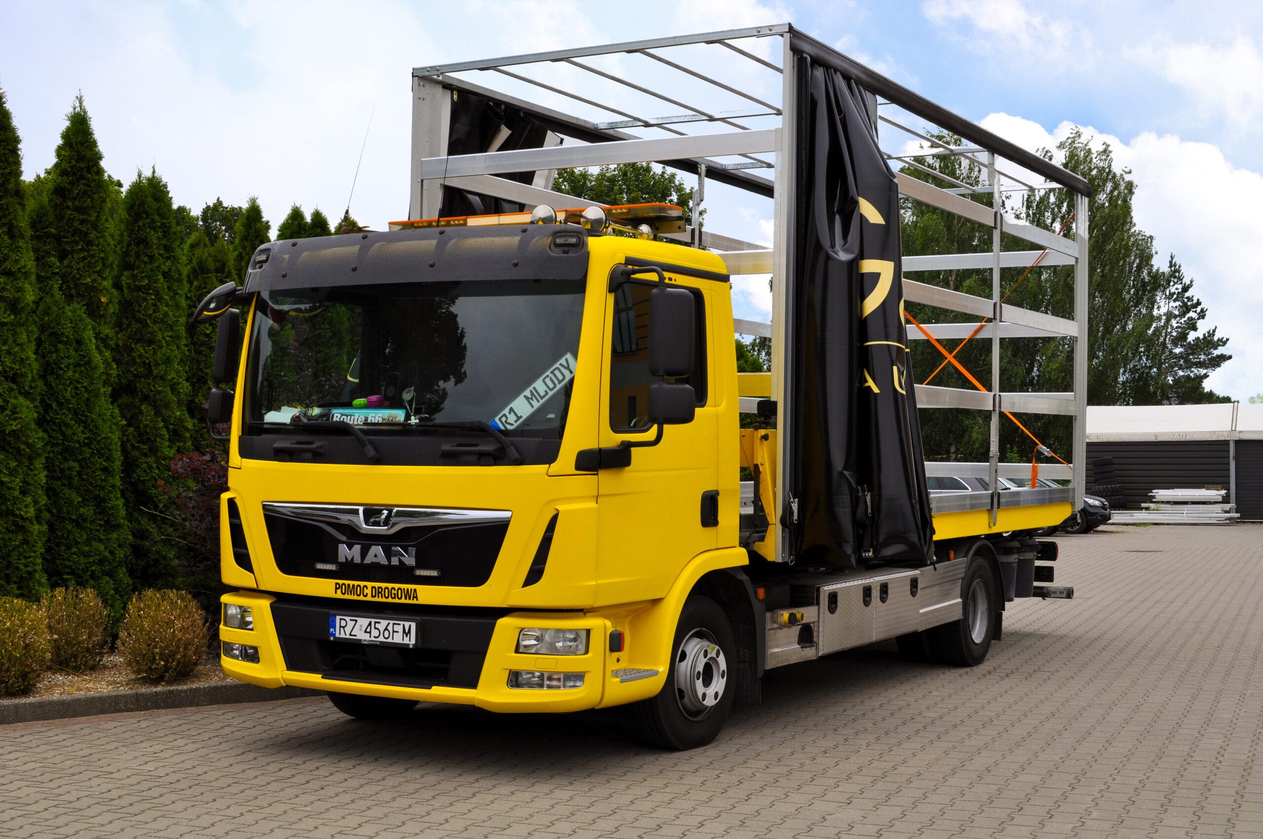 Na zdjęciu możecie zobaczyć pojazd z logiem klienta. Wyposażony został w nowoczesną, solidną zabudowę przeznaczoną do transportu samochodów. Obecnie jesteśmy w trakcie dopasowywania jej do indywidualnych potrzeb klienta. Finalna wersja zabudowy będzie w pełni przystosowana do bezpiecznego transportu pojazdów luksusowych i sportowych. Szczególnie z naciskiem na zabezpieczenie i łatwość obsługi.