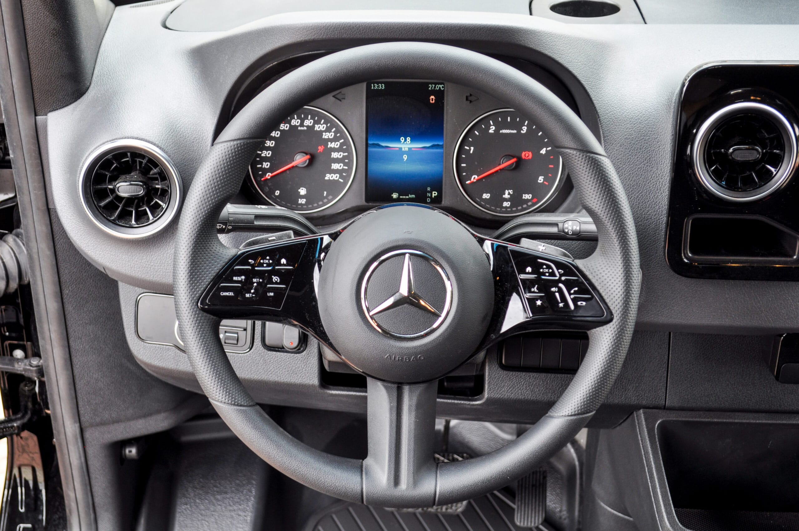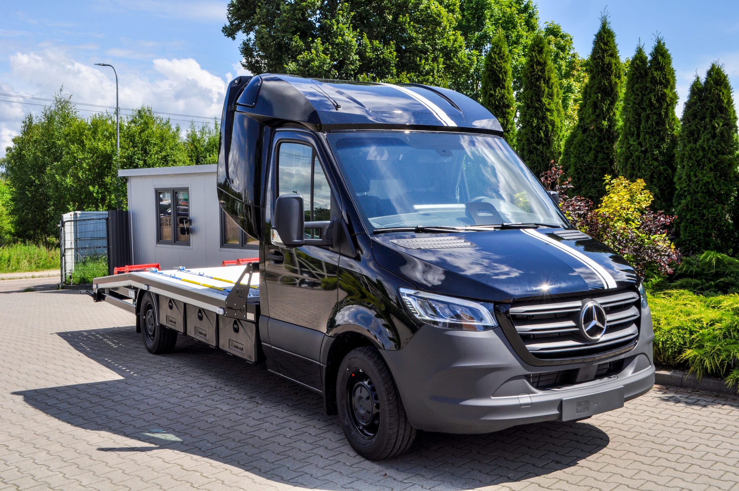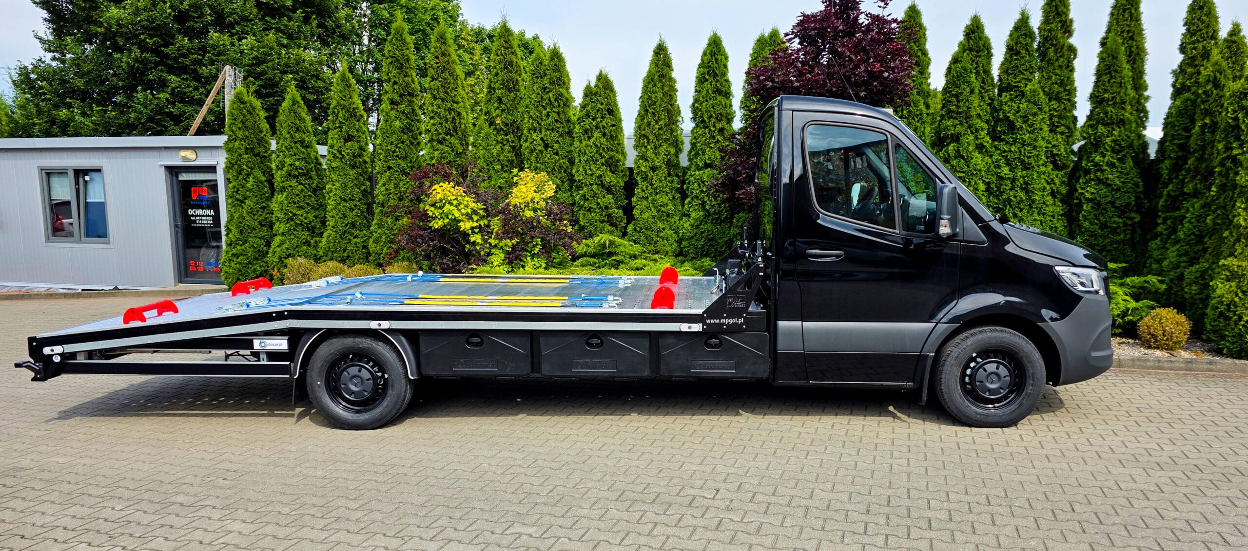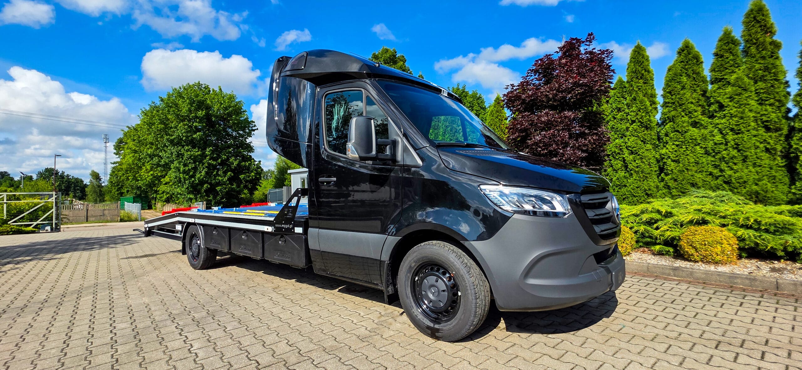 Mercedes Sprinter z aluminiową platformą i kabiną sypialną niebawem wyrusza w trasę, a jej właściciel może cieszyć się pełnym wyposażeniem auta, w skład którego wchodzą: