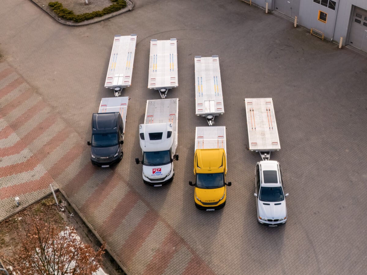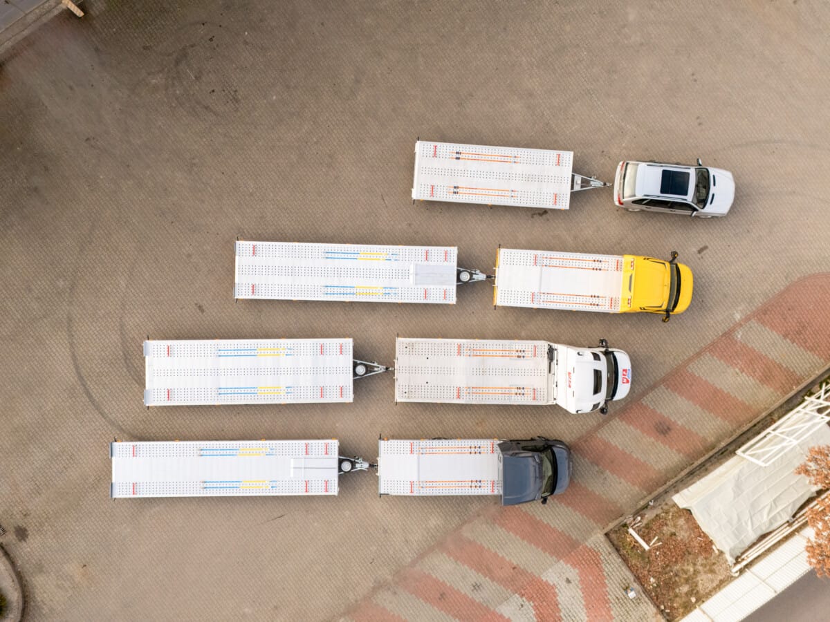 Od dłuższego czasu nie wykonywaliśmy zdjęć w tym formacie, więc pora na zmianę! Przedstawiamy ostatnie cztery lawety przyczepy wraz z pojazdami z widoku lotu ptaka.