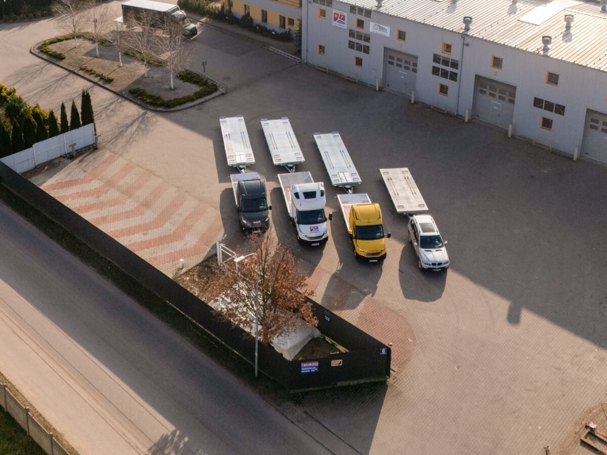 Wykonaliśmy zdjęcia z trzema autolawetami oraz samochodem osobowym w połączeniua z nimi lawety przyczepy, które świetnie prezentują się na zdjęciach, a jeszcze lepiej z lotu ptaka.