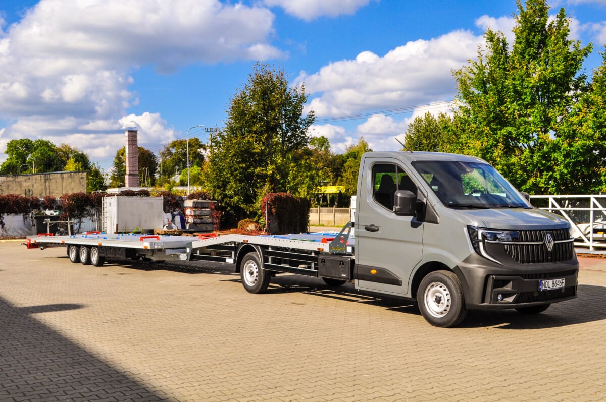 Przedstawiamy najnowszy zestaw do transportu pojazdów, który łączy w sobie solidność konstrukcji, funkcjonalność i nowoczesny wygląd. Na bazie samochodu Renault Master, zabudowanego przez firmę BUDOCAR, powstała profesjonalna platforma do przewozu aut, gotowa do pracy nawet w najtrudniejszych warunkach.
