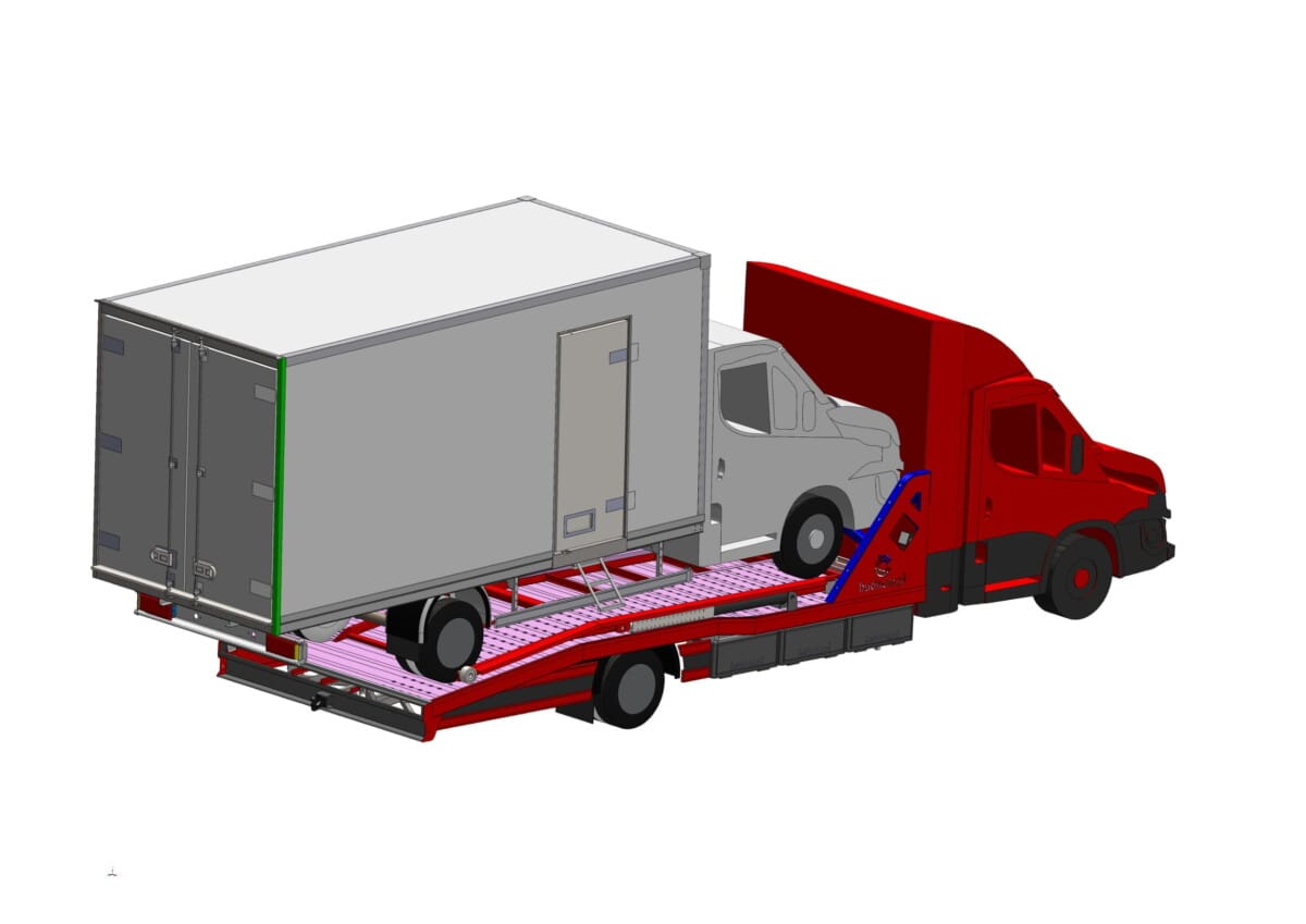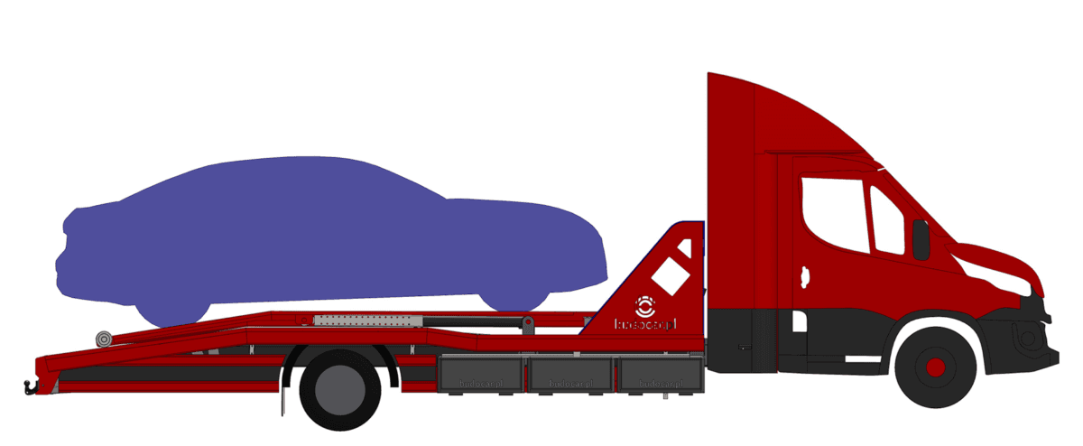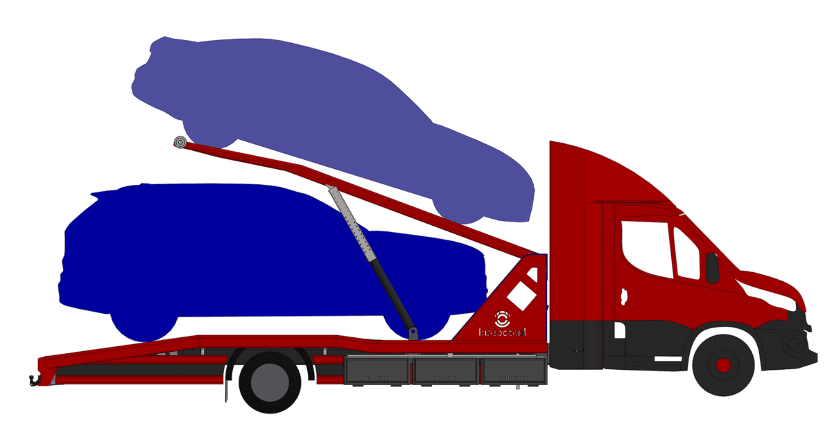 - Wymagane podwozie: Aby legalnie przewozić 2 średnie auta osobowe, potrzebujesz podwozia o DMC min. 7000 kg – 7200 kg (np. Iveco Daily 70C18/72C18, Mercedes Sprinter 5t+, Daf, Man i inne).