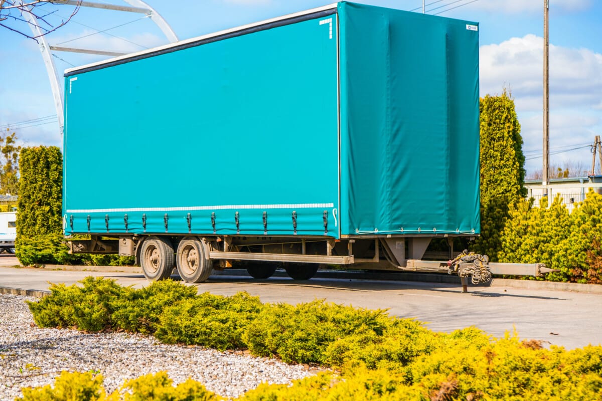 Dostaliśmy zlecenie na przerobienie przyczepy z zabudową burtową. Zamieniliśmy ją w zabudowę skrzyniową z firankami i bokami przesuwnymi. Zielona plandeka, którą jest okryta idealnie pasuje z tą przyczepą.