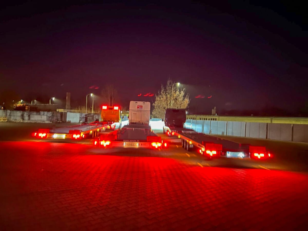 Cztery nowe przyczepy lawety w świetle nocy