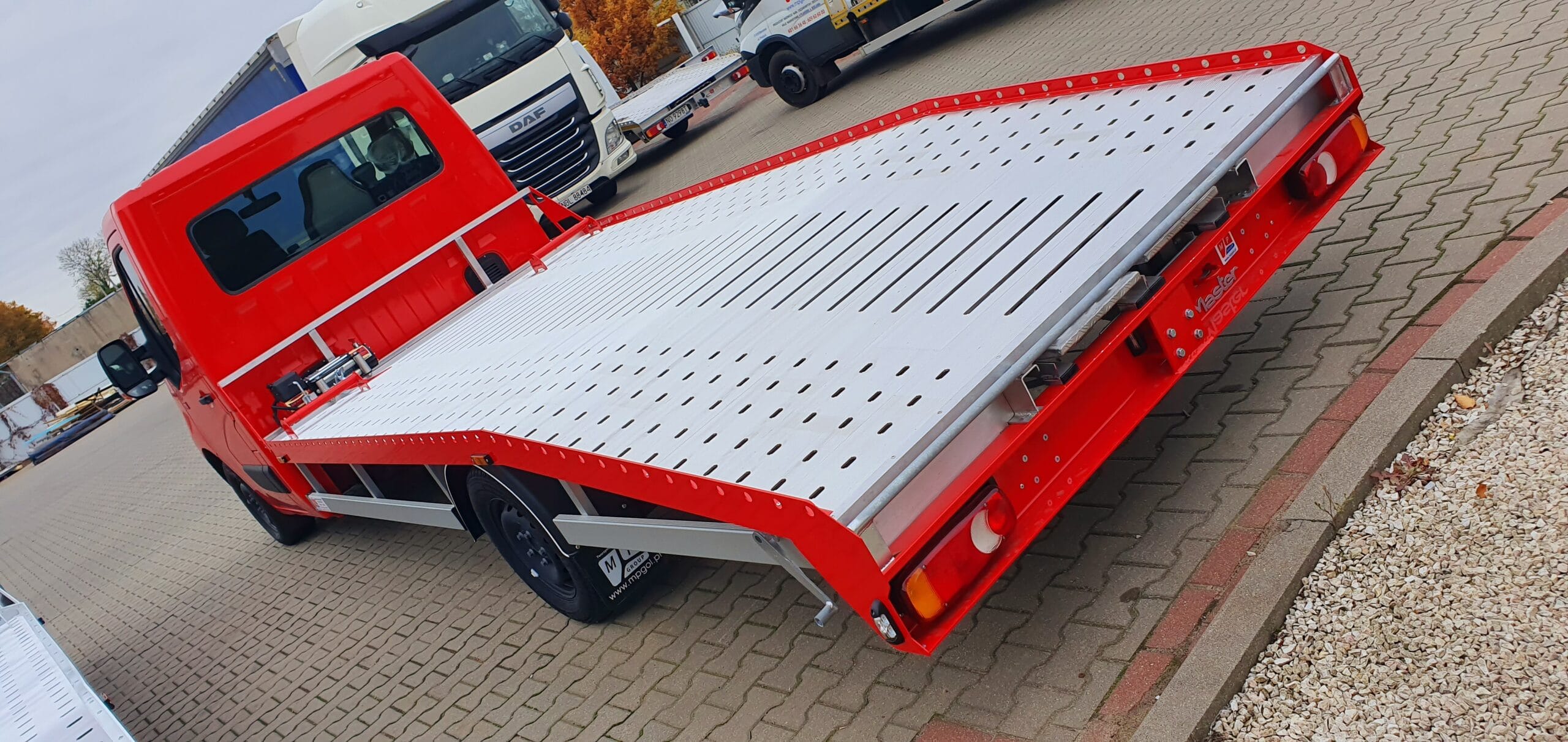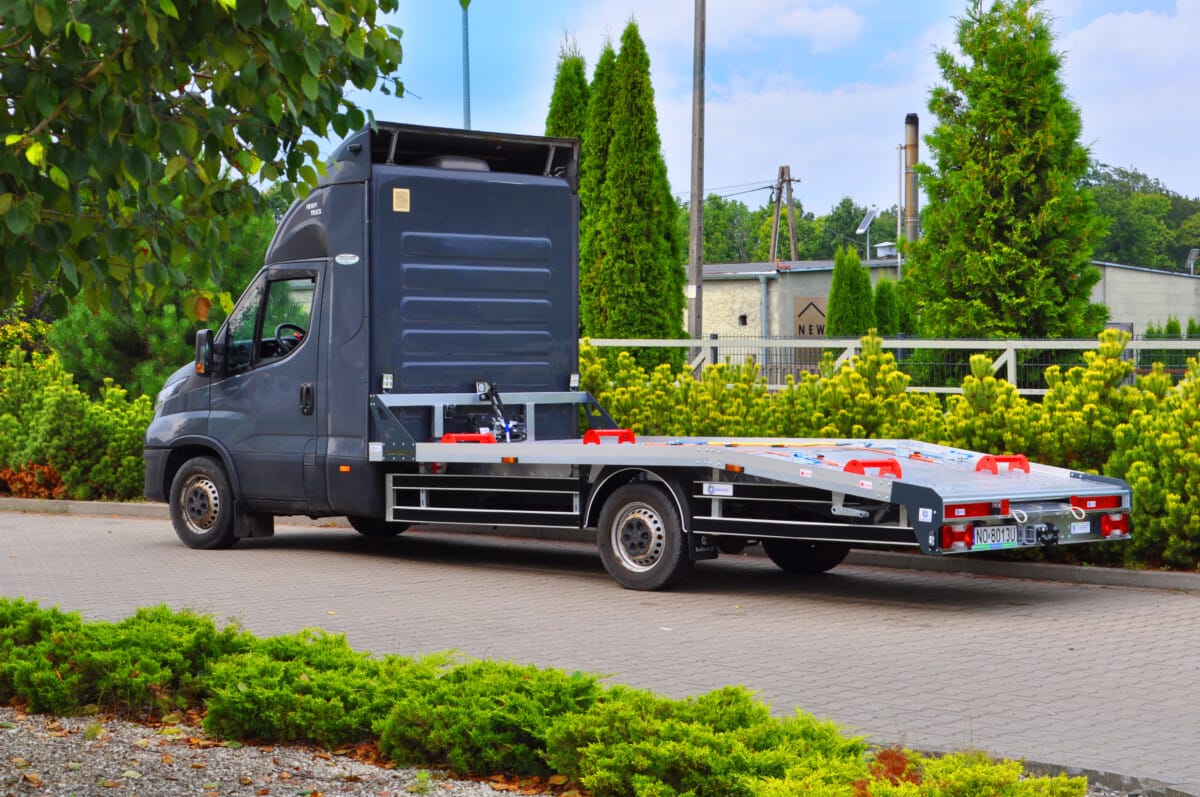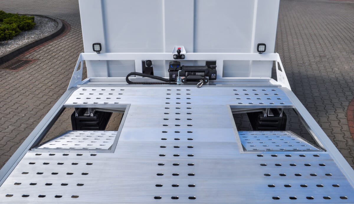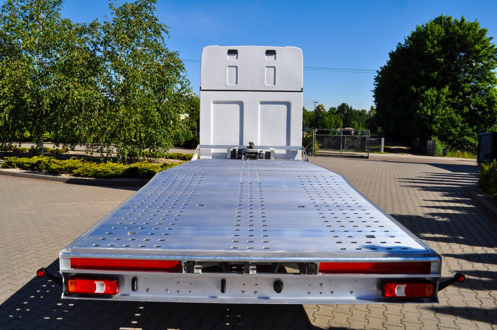 Autolawety, czyli innymi słowy zabudowy typu autotransporter z ramą podłogi wykonaną z aluminium. Część jezdna wykonana jest z lekkich, ale wytrzymałych paneli aluminiowych otworowanych. Autotransporter standardowo wyposażony jest również w trapy najazdowe, skrzynki narzędziowe i wyciągarkę. Zabudowa posiada oświetlenie konturowe w technologii LED zgodne z Kodeksem Drogowym.