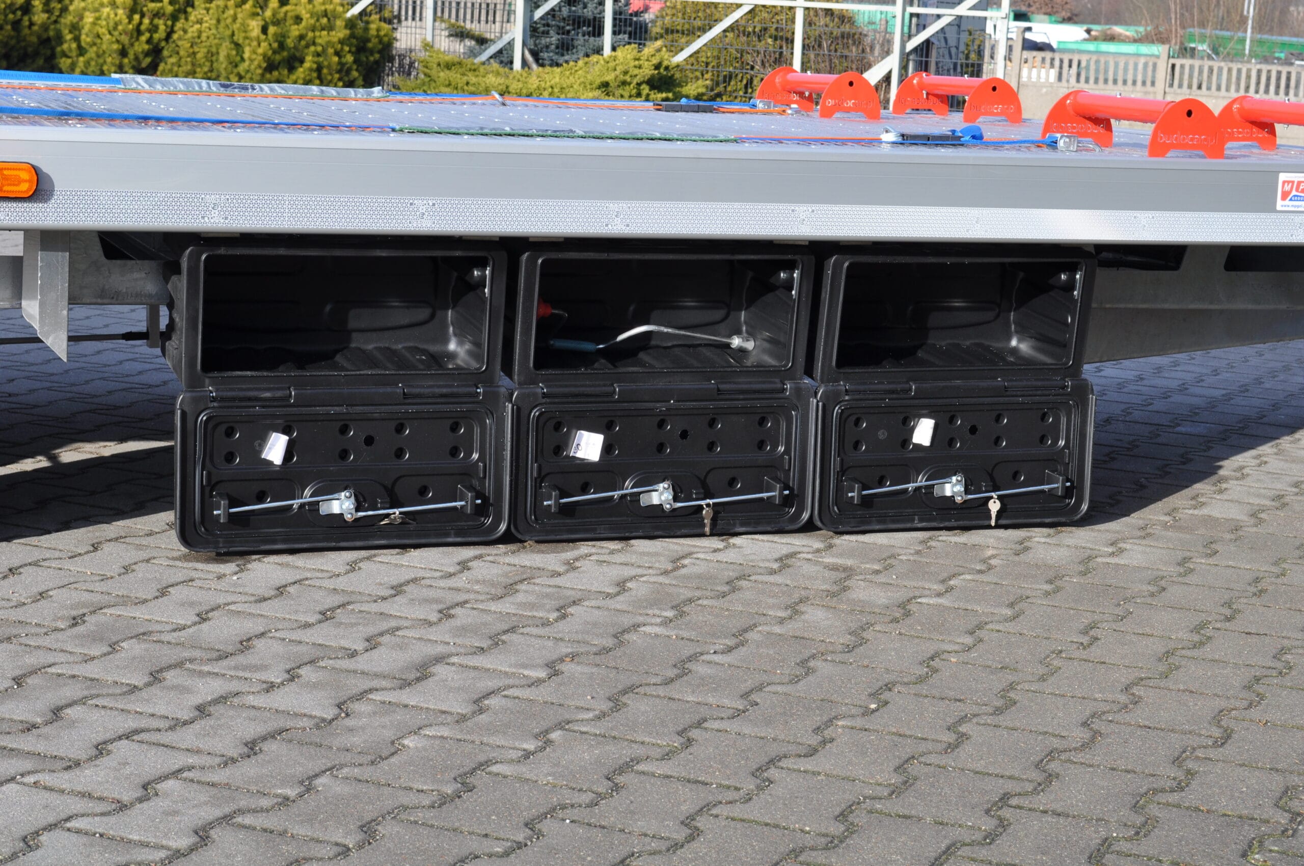 Oferujemy montaż skrzynek narzędziowych, skrzynek zakabinowych, bądź zbiorników. Takie opcje przydadzą nam się szczególnie jeżeli planujemy zabrać ze sobą więcej asortymentu lub po prostu często brakuje nam miejsca.